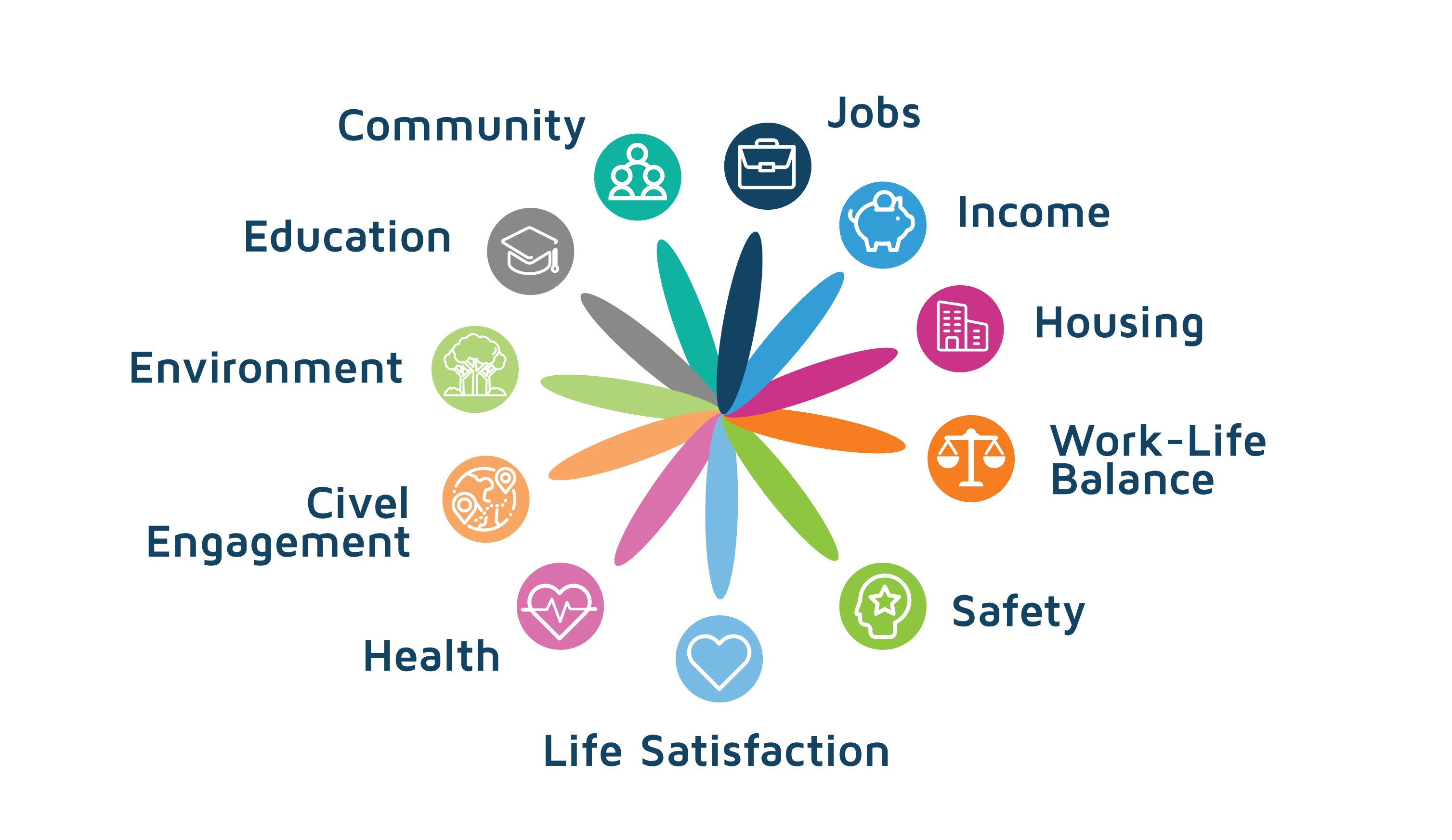 Fig. 1. The 11 topics of well-being used for the OCED Better Life Index
