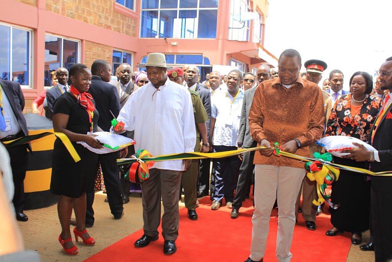 H.E. Uhuru Kenyatta, President of the Republic of Kenya and H.E. Yoweri Kaguta Museveni President of the Republic of Uganda joined by Amb. Liberat Mfumukeko, East African Community Secretary General, officially launched the Busia One Stop Border Post (OSBP) located on the Kenya/Uganda border.