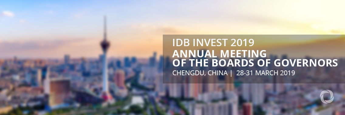 The Inter-American Development Bank Group will hold its Annual Meeting in Chengdu, China on March 27-31, with the participation of authorities and leaders from the public and private sectors. The meeting will discuss the challenges that Latin America and the Caribbean region faces in economic growth, sustainable infrastructure investment, innovation and the future of cities, among others.