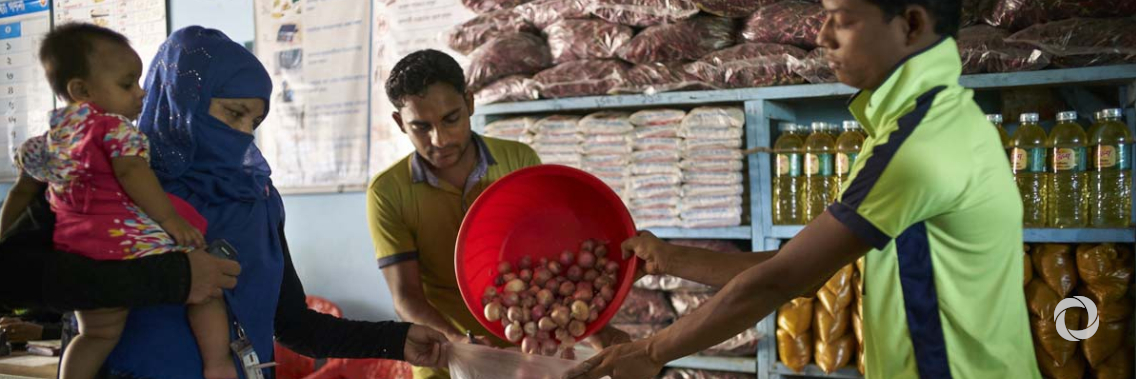 “The e-voucher method of food distributions also provides benefits to the local population with Bangladeshi retailers contracted to run the outlets and much of the food sourced locally in Bangladesh.”