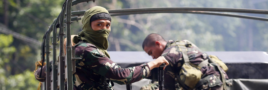 Philippine troops ride on their truck on their way to the frontline in the outskirts of Marawi on the southern island of Mindanao.